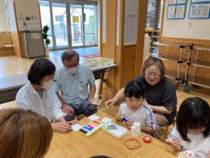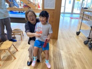 宙組さんのおじいちゃん、おばあちゃんに参加していただき、「いっしょにつくろう・あそぼう」参観日を行いました。
