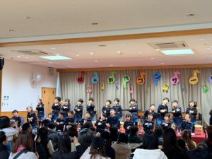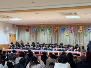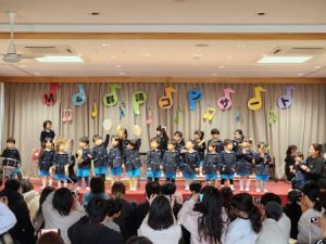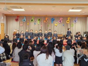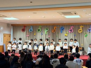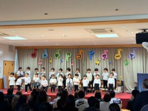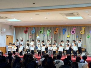 宙組さんは、群読「四季の漢詩・春暁・憫農・秋風引・江雪」合唱「ありがとうの花」「きみイロ」ピアニカ奏「パプリカ」合奏「君に捧げる応援歌」です。保育園最後のM&群読コンサートを100点満点で演奏できました。子どもたち一人ひとりの力はすごい!!