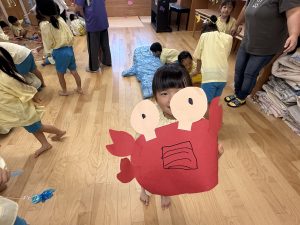 自分たちで想像して魚や生き物を作ってみたり、ジンベイザメは大きさにこだわりみんなが乗れるようにしました。
