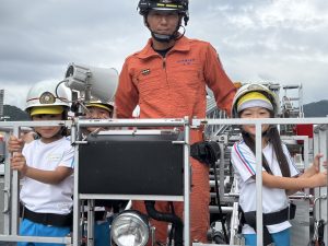消防士さんとお話しながら「○○が見える!」など楽しんでいた子ども達でした😊