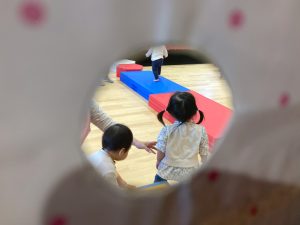 最初は、シークレットの状態で普段のホールでの遊びの様子やお友達と関わる姿を見てもらいました。
