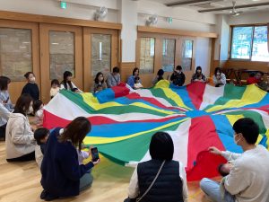 ふれあい遊びとして「親子公園」という歌でお父さんお母さんに