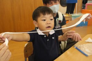 一緒にぐにゅぐにゅと触ったり、びよ~んと伸ばしたりして遊んだね(^^)