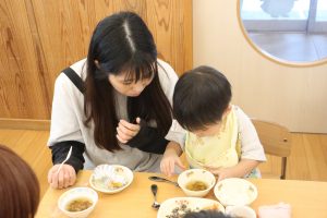 いつもと違う雰囲気でしたが、一緒に食べたりお膝の上に座って食べたりして、たくさん食べました♪