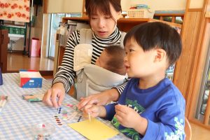 5月から取り組んでいるサントレを見ていただき、そのあとは一緒に製作を楽しみました♪