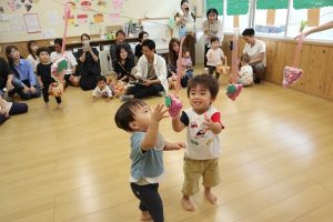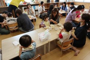 遊んだ後は、給食。いつもの雰囲気と違い、お家の方がいらっしゃると甘えてしまう子もいましたが、みんなたくさん食べました。
