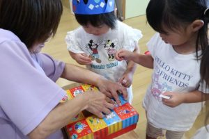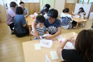 お父さん・お母さんと一緒にハサミを使ってチョキチョキと切りました✂
