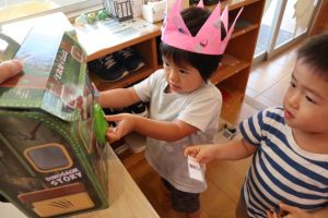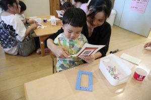 サントレ後は、お買い物ごっこで使う「スマホ」の製作をしました。