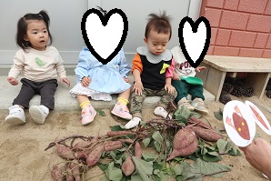 25日(土)は、ぞう組さん「親子芋ほり遠足」の予定でしたが、あいにくの雨で中止となってしまいました。代わりに職員がお芋を掘って来て、後日「芋ほりごっこ」をしました🍠