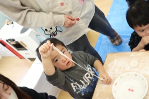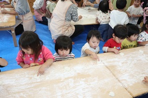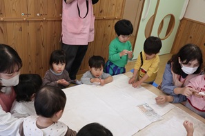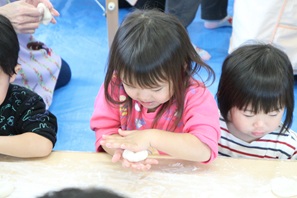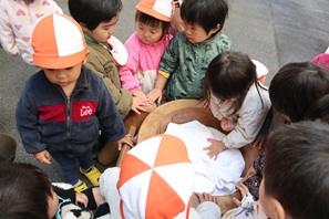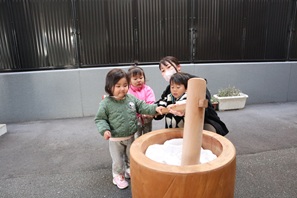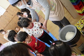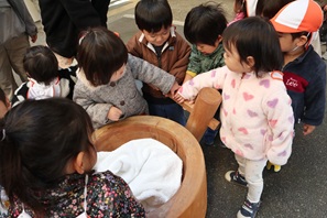子ども達は五感を使って「餅つきごっこ」を楽しむことができました。