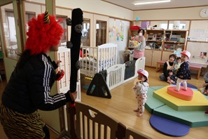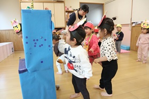 まずは、職員の出し物です。角をなくしてしまった鬼さん・・鬼さんの角はどれかなぁ~?
