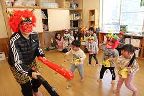 その後はクラスに戻って、豆まきごっこなどをして過ごしました。
